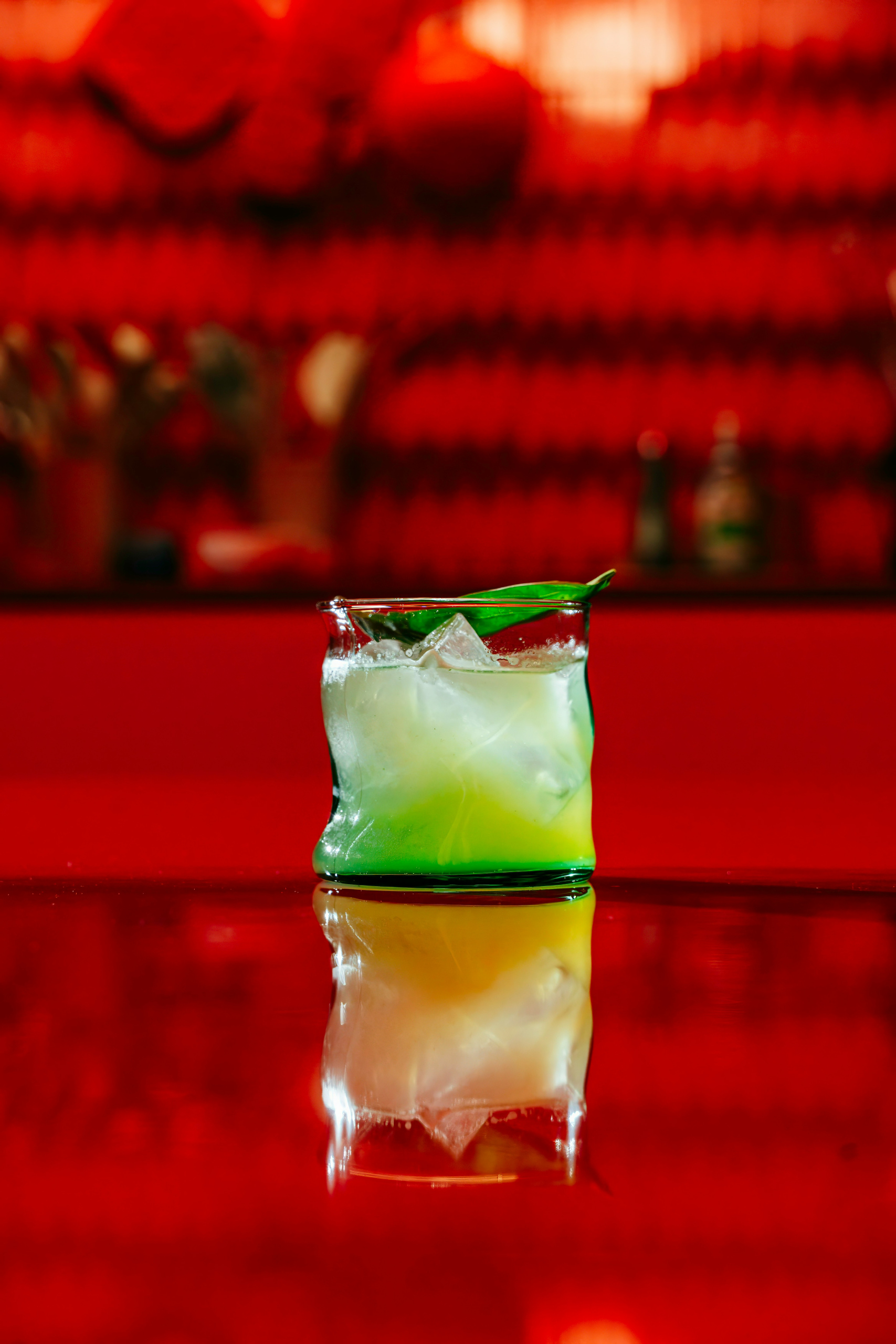 - Gently muddle the Basil leaves with Lime Juice and Sugar Syrup in a shaker.
