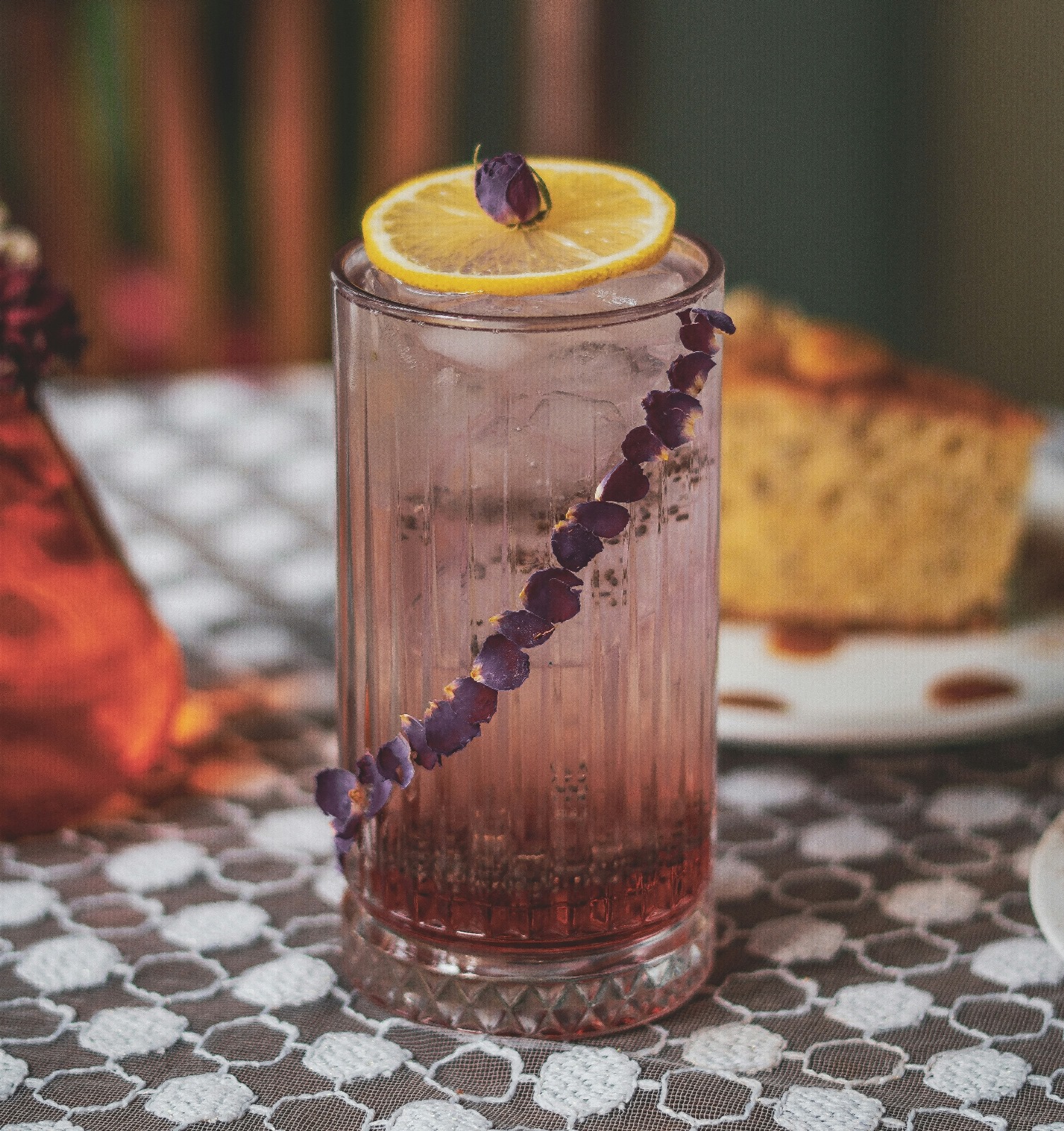 - Garnish with a lemon wheel and a sprinkle of dried rose petals.