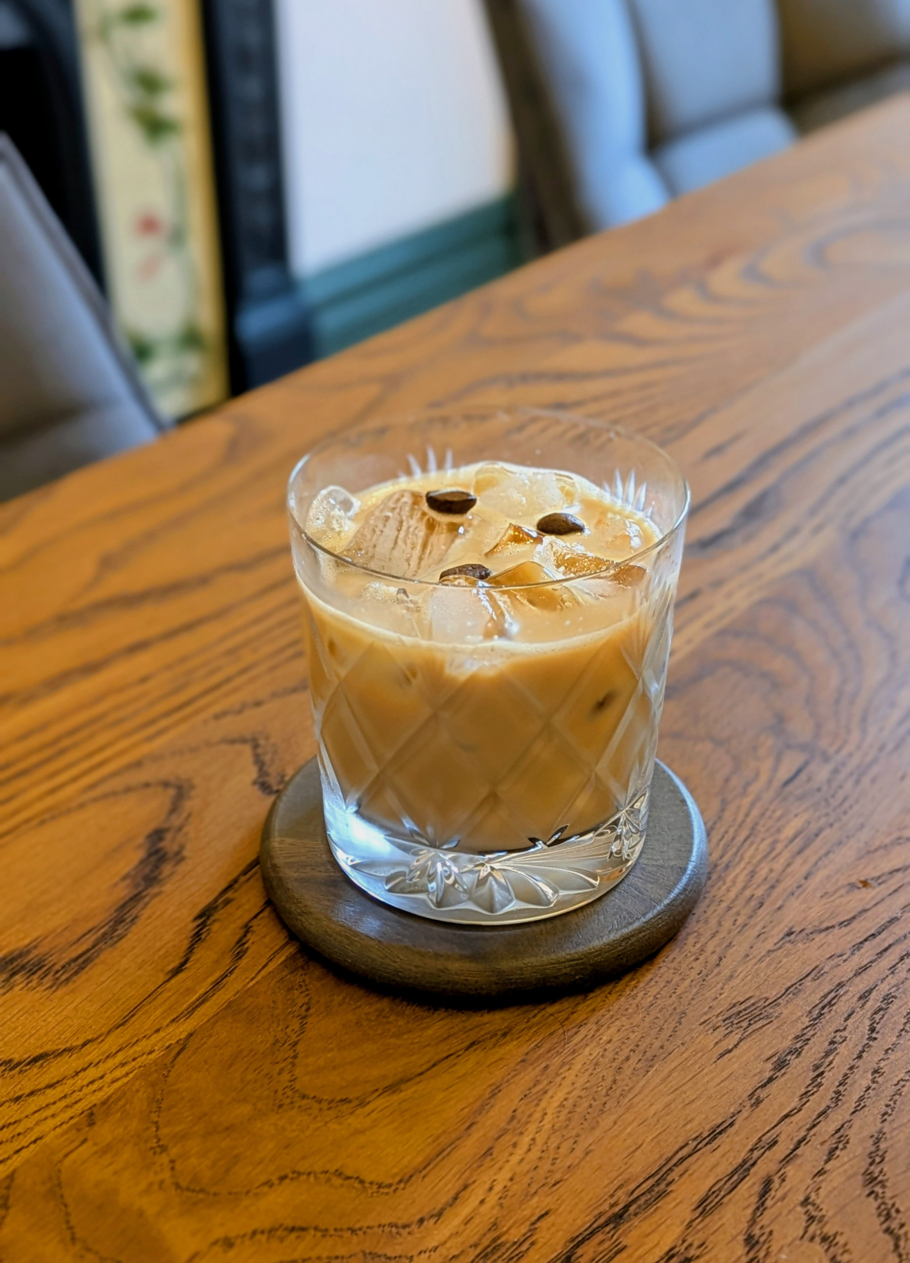 - Garnish with around three coffee beans.